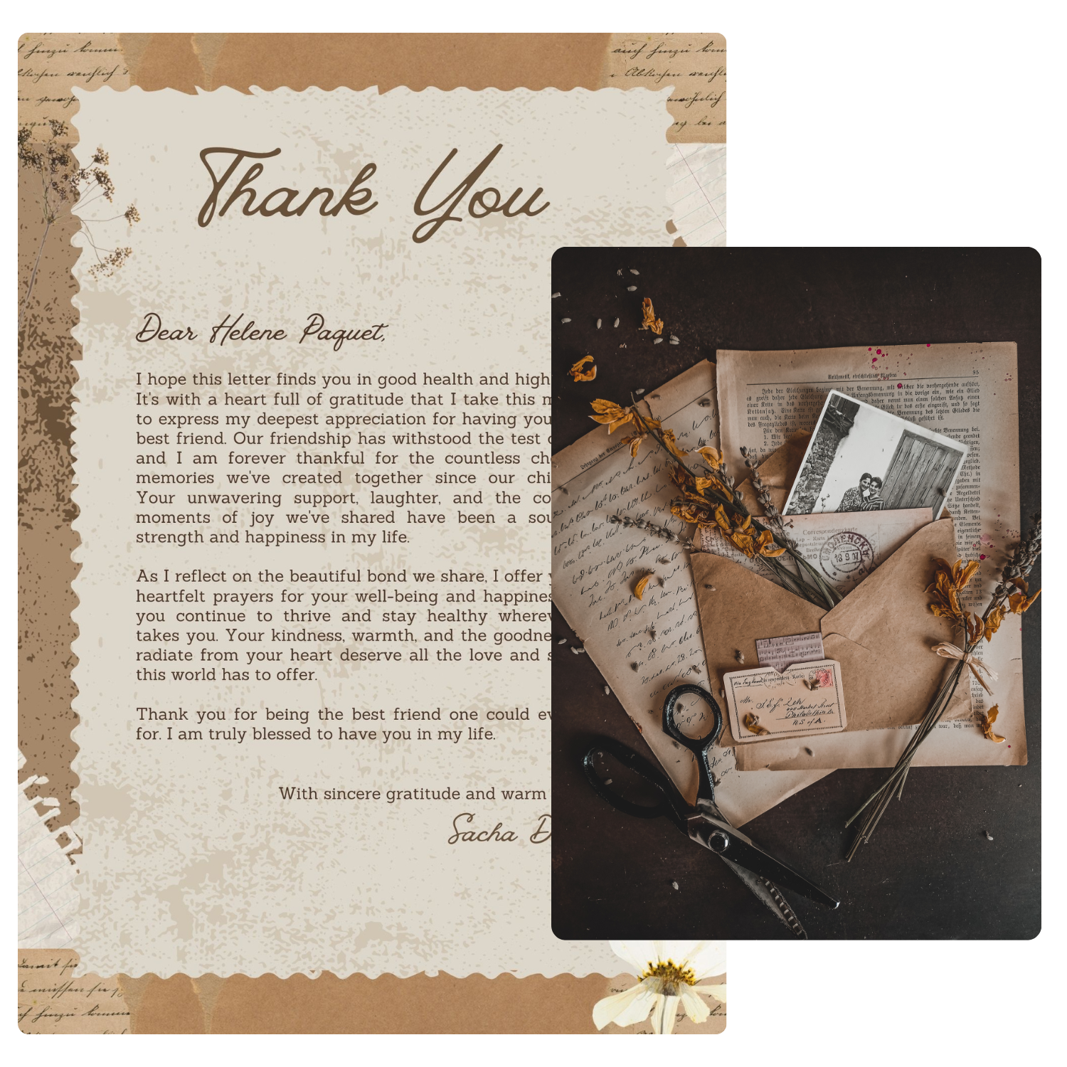 Bei ZeitloseBriefe glauben wir an die Magie von Geschichten, die man mit Händen greifen kann. Jede unserer Geschichten wird in handgeschriebene Briefe verwandelt, liebevoll gestaltet und direkt zu dir nach Hause geschickt.